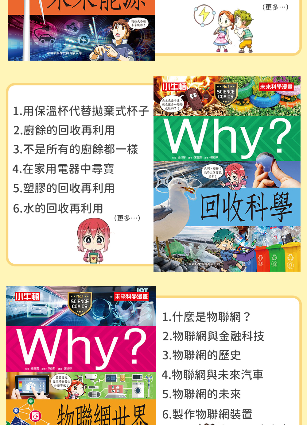 遺傳與血型、未來能源、回收科學、物聯網世界