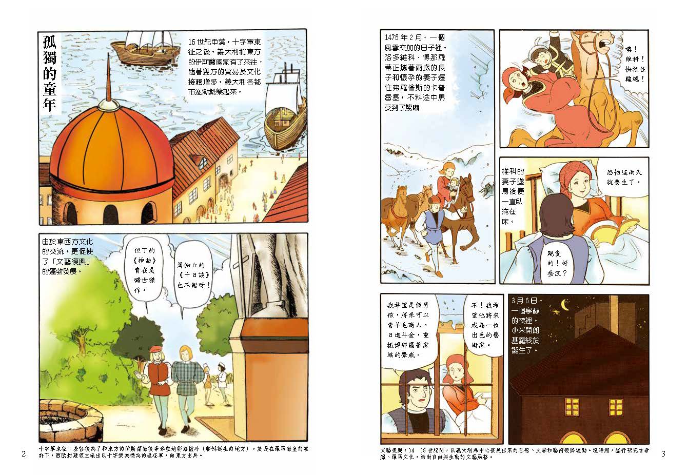 1. 以漫畫故事描述世界名人生平,流暢敘事情節,簡潔有力對白,加上生動筆觸與亮麗畫面,讀起來輕鬆有趣。