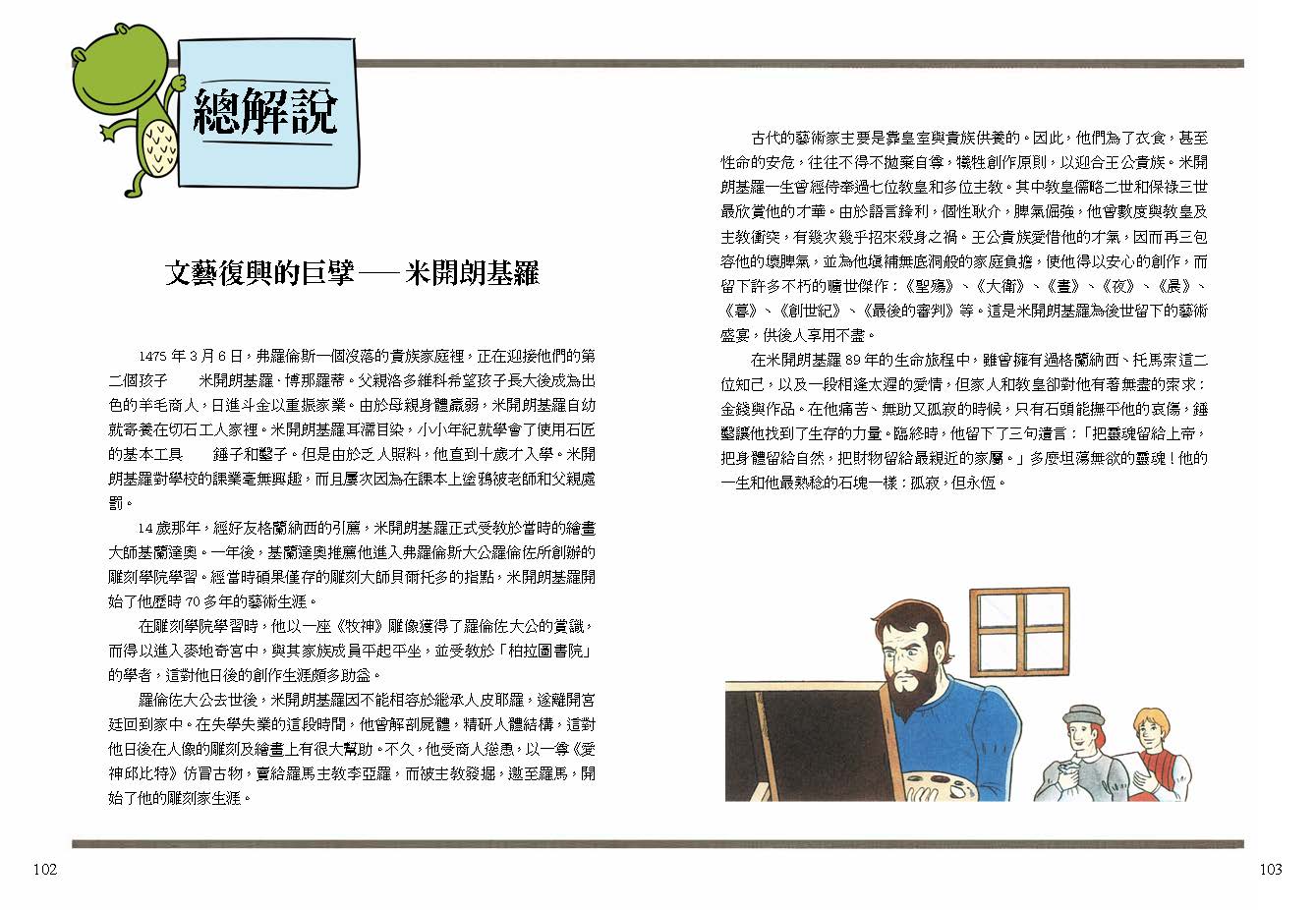 5. 書末附有名人年代表,將名人生平大事、發生時間及世界大事編列成表,加深學習效果。